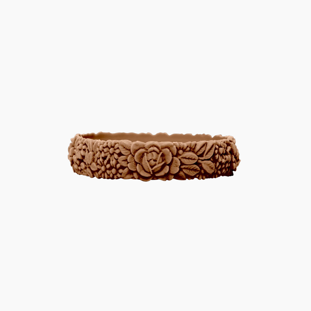 The O bracelet flower slim bracelet in bronze is an essential accessory if you like a subtly refined look. It has been made from hardwearing non-allergenic lightweight silicone and is pleasant against the skin. Loaded with nostalgic romanticism, this O bag bracelet has been given a contemporary spin with fresh new materials and 3D detailing. It calls forth images of blooming flower beds and is extremely feminine – a gorgeous gift for yourself or someone else. The O bag bracelets are perfectly suited to any occasion, whether you are running busily around town, enjoying your dream holiday or chatting with friends over an evening meal. It is available in a host of different colours and sizes so you will be spoilt for choice. Wear it alone or go for the mix&match trend, layering different materials and colours – trust your instinct and create. We recommend that you avoid exposing the O bracelet flower to the sun’s rays for extended periods of time, to high temperatures (for instance, do not leave it next to a hot radiator in winter and don’t forget it inside a hot car in summer) or to other heat sources so that it does not become damaged or change shape or colour. The O bracelet flower slim cleaning is really easy: all you need to do is wipe it with a soft cloth you have dipped in warm water in which neutral soap has been dissolved, but do not rub. The image of the O bracelet flower slim bracelet in bronze is merely indicative. The product may change during the manufacturing process. The photograph shows the color of the product as accurately as possible; however, different devices may differ in their screen settings. We cannot guarantee that the screen of the device you are using will return the color accurately.