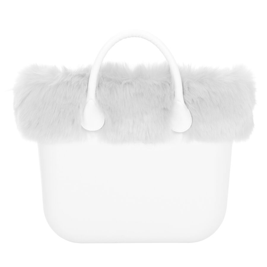 Komplett összeállítás táskatesttel, cipzáras vászon béléssel, műszőrme gallérral és rövid fogóval: