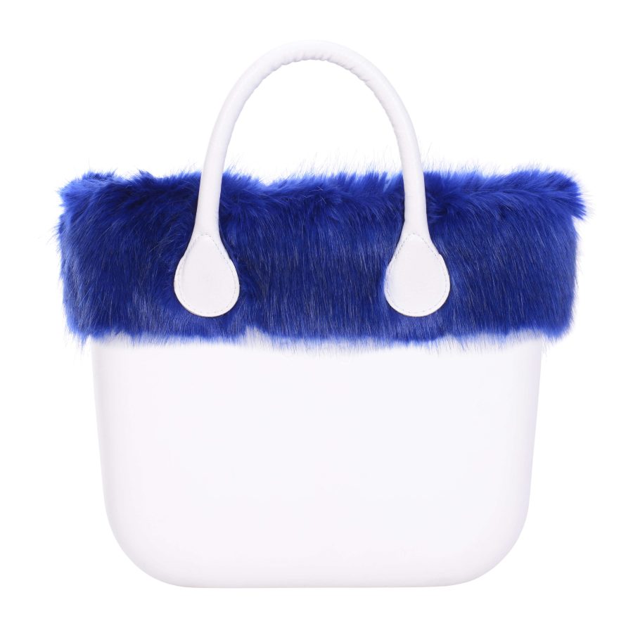 Latte O bag Classic táska blu mű rókaprém gallérral, bottalato hatású rövid láncos "T" fogóval és béléssel