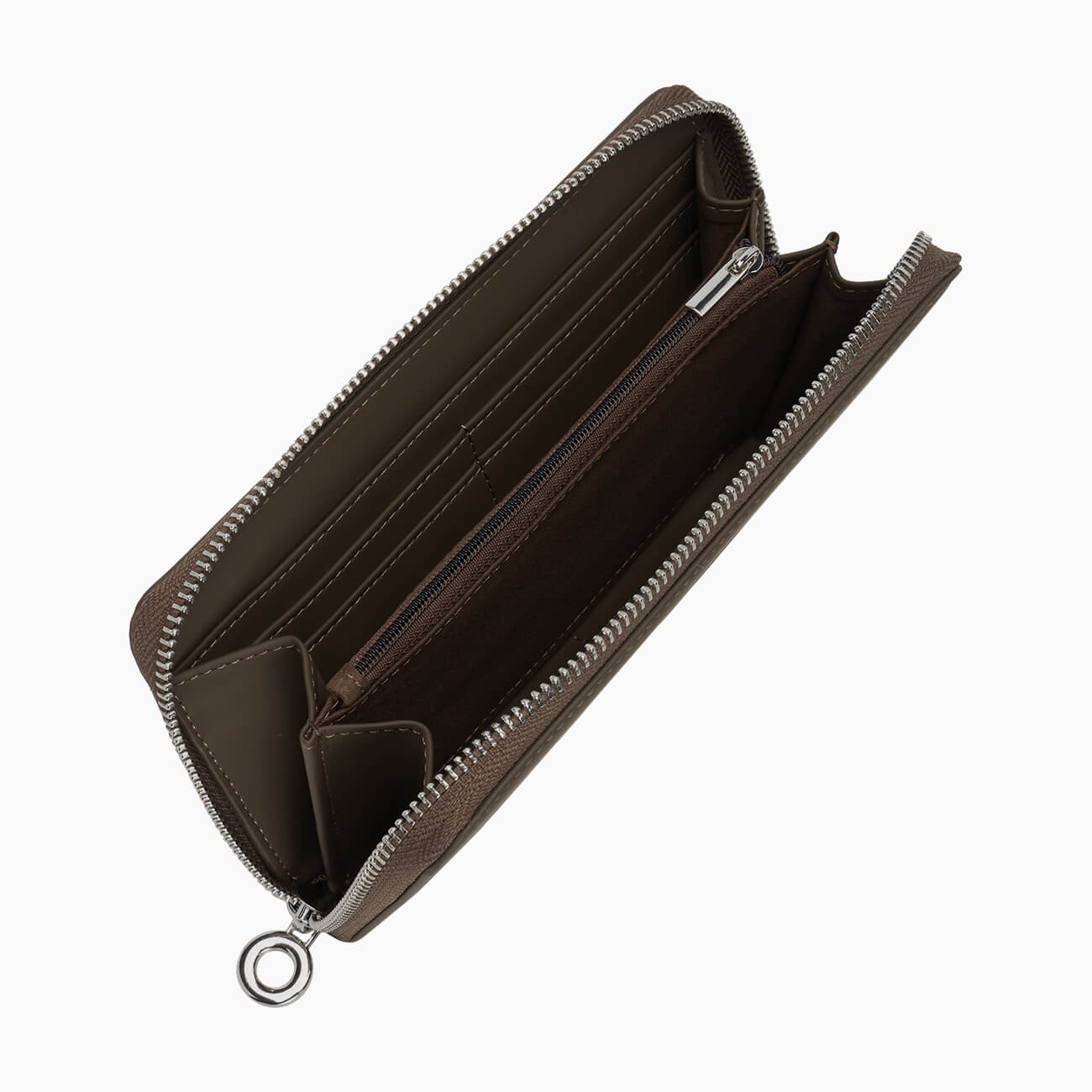Nagyméretű pénztárca cipzárral, kártyahelyekkel és érmés tárcával.