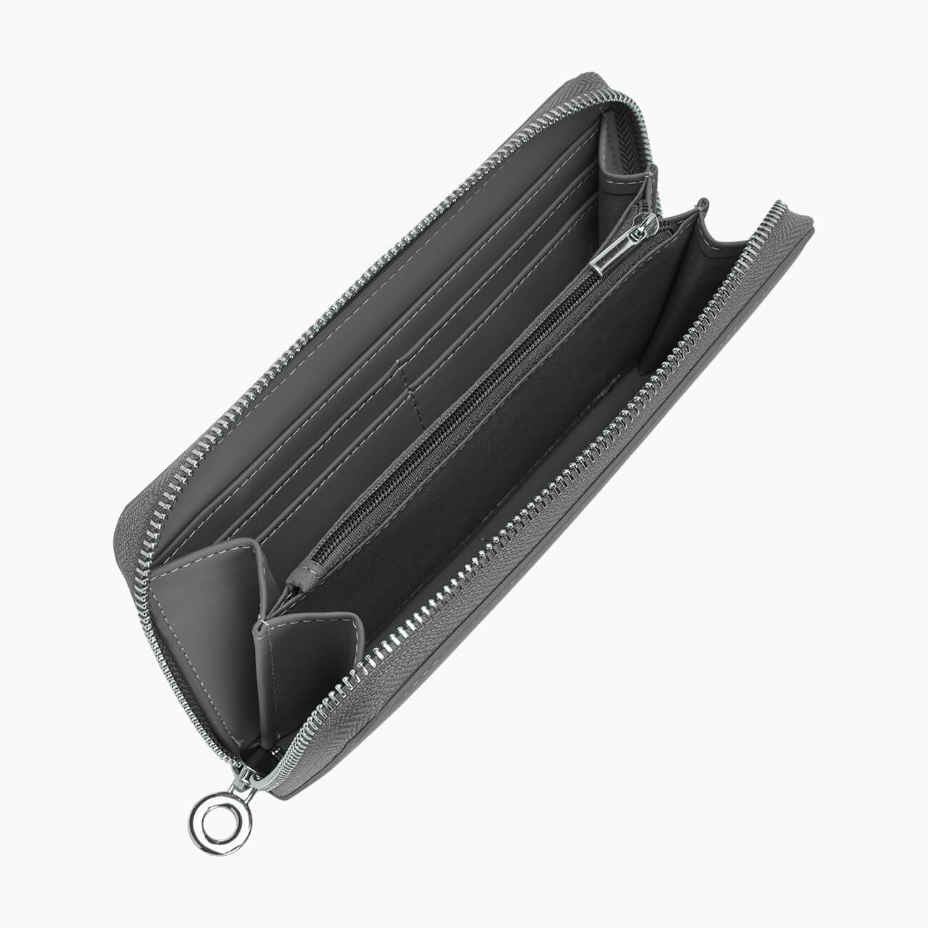 Nagyméretű pénztárca cipzárral, kártyahelyekkel és érmés tárcával.